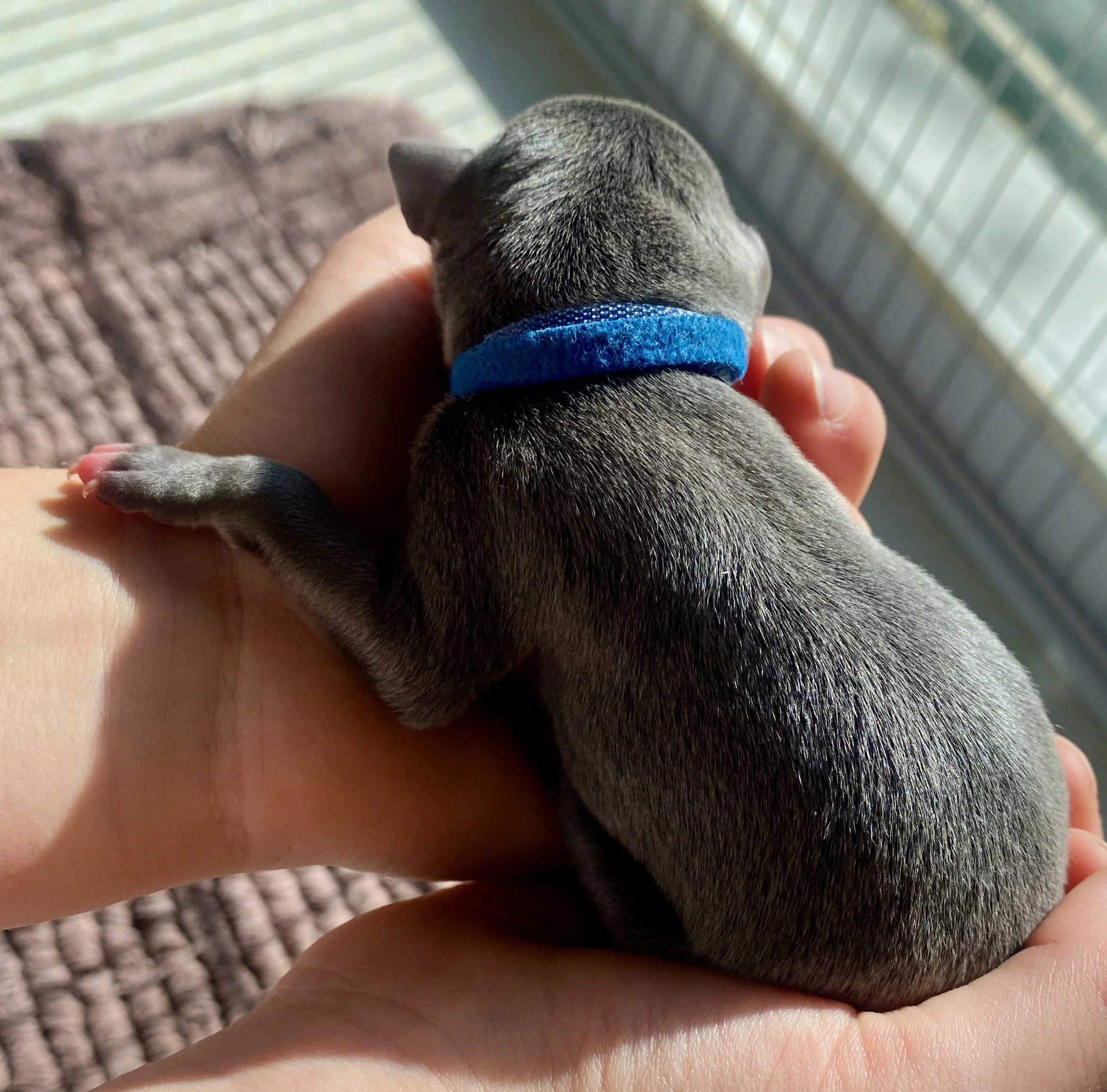10/17 Breggie is 12 days old and growing like a weed. He’s mostly blue like his dad, the Count. He’s been reserved by Oscar! Congratulations to everyone.
