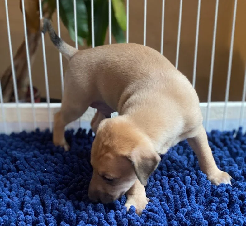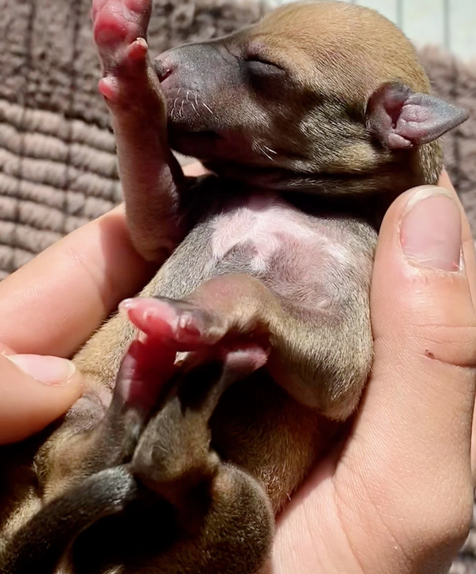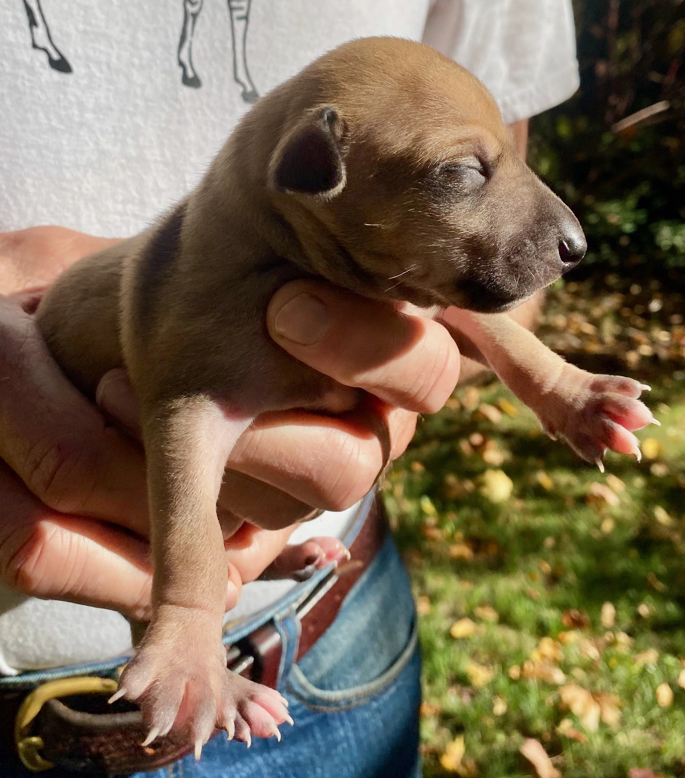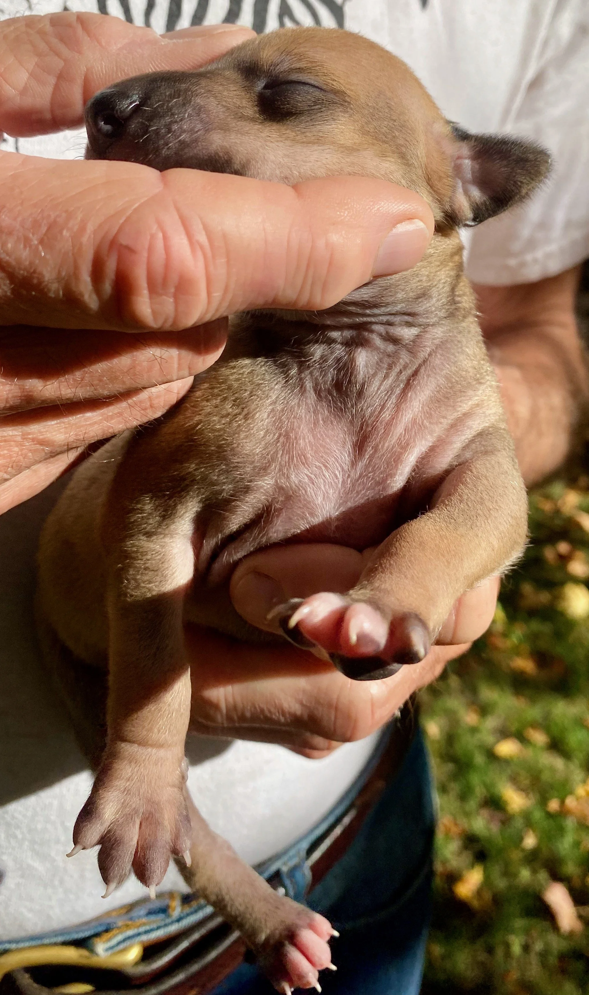 10/18 Maldy is 13 days old and his red fawn coat is getting more beautiful. His eyes and ears will be open soon