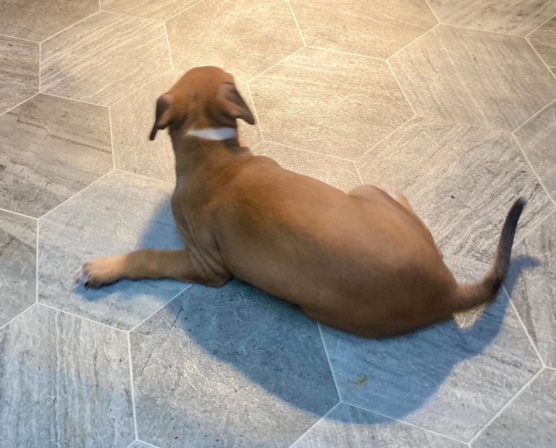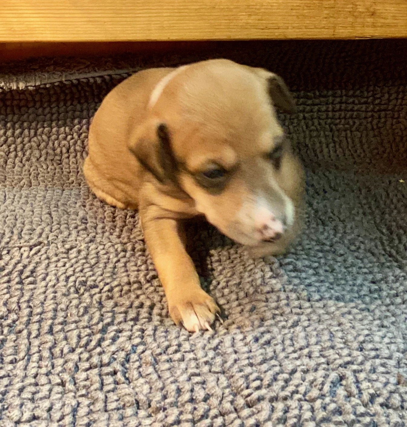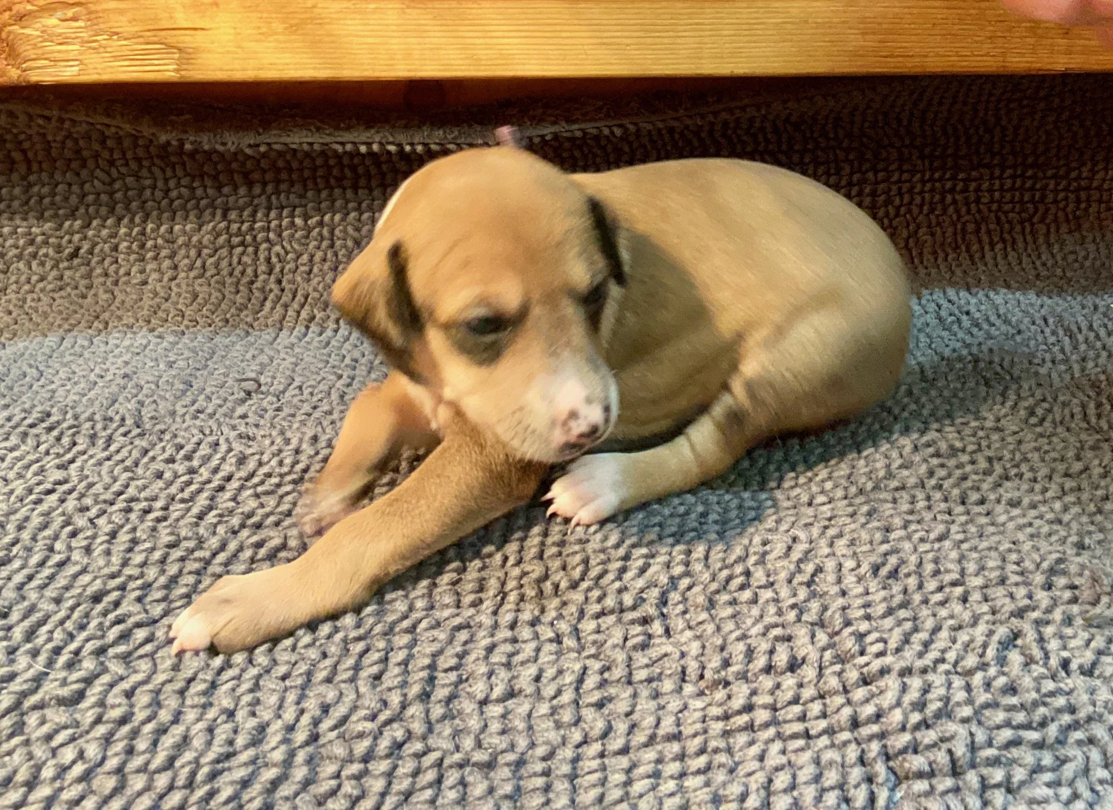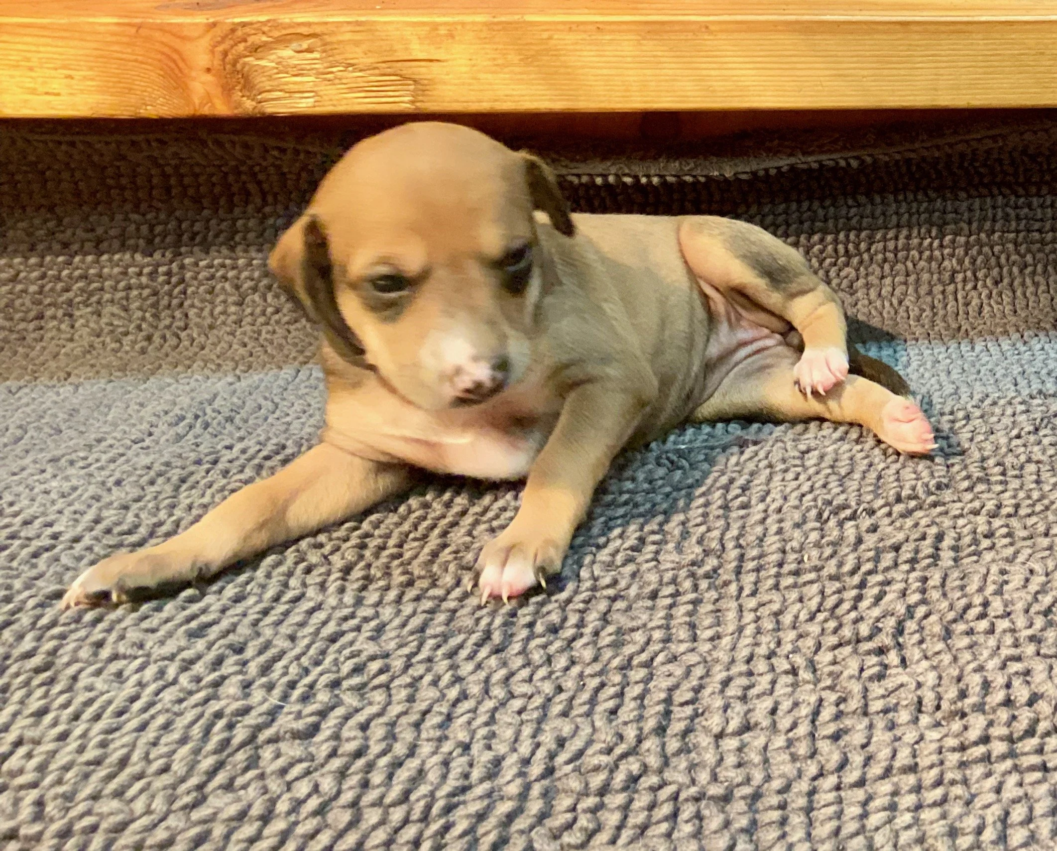 Bella (formerly Tina) is a sweet little female IG. She’s a beautiful fawn color with dark sable points (her mom, Pearl, is a solid dark sable) and a cute white nose. She also has a white collar. She’ll be even cuter when her eyes and ears open in about a week. Great news! Marilyn and Gary have reserved Tina! Congratulations!