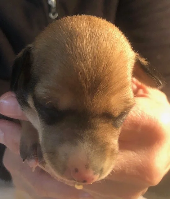 3/28/22 Tina with eyes open. Her spotted nose will eventually become all black.